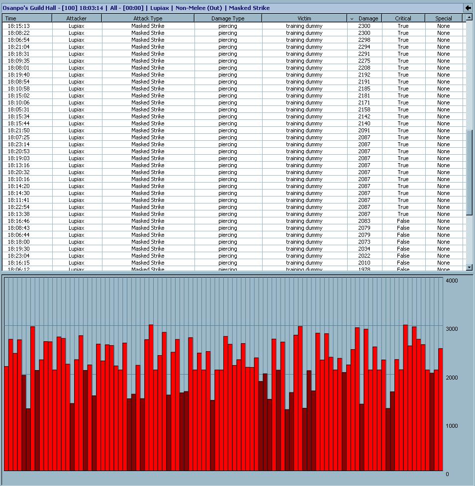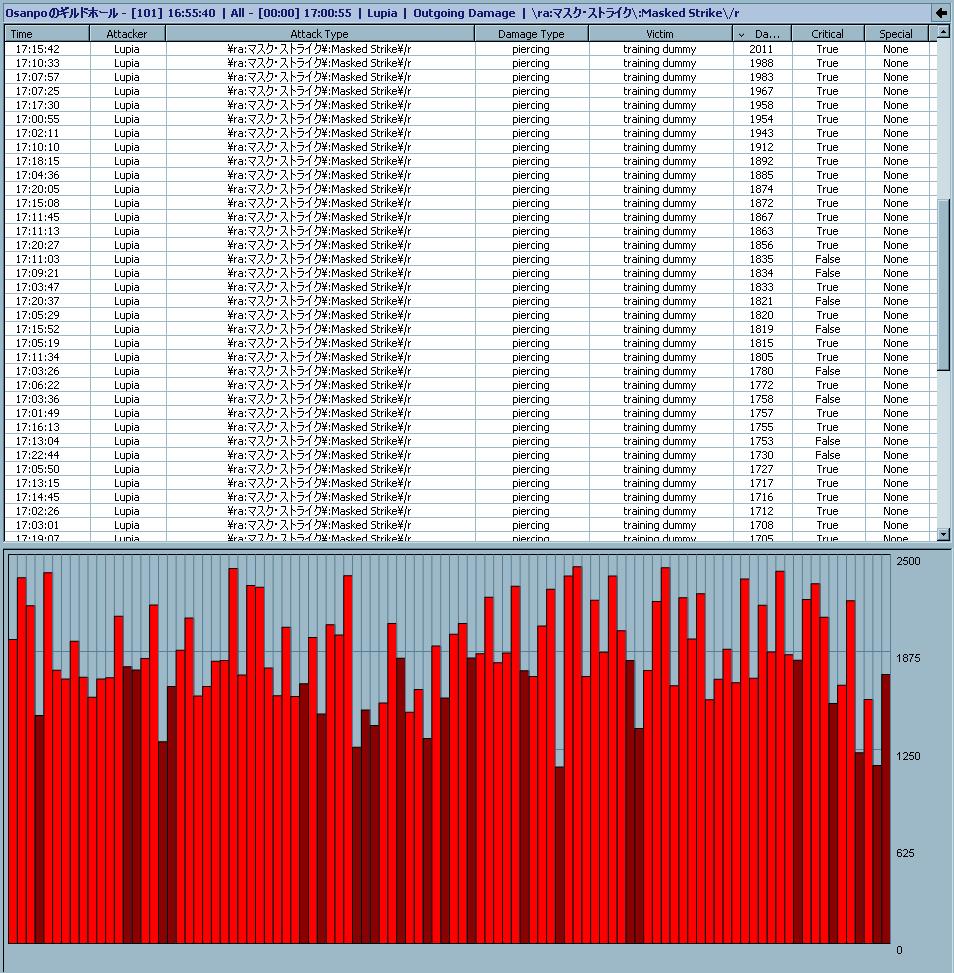 それぞれで統制を取ってMasked Strikeを100発ずつ打ってきた結果です。