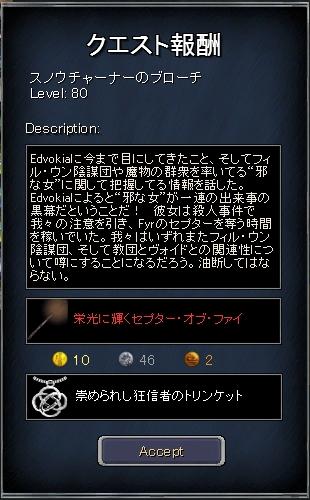 けっこうな、いやかなりの長編クエストで大変でした。Eq2iのSpoiler見つつでたっぷり4時間くらいかかったかも。RoKで帰還したKarana、TribunalとBertoxxulousにはこんなイベント無かったのに比べてRodcet Nifeは待遇がいいなとか思いつつ。